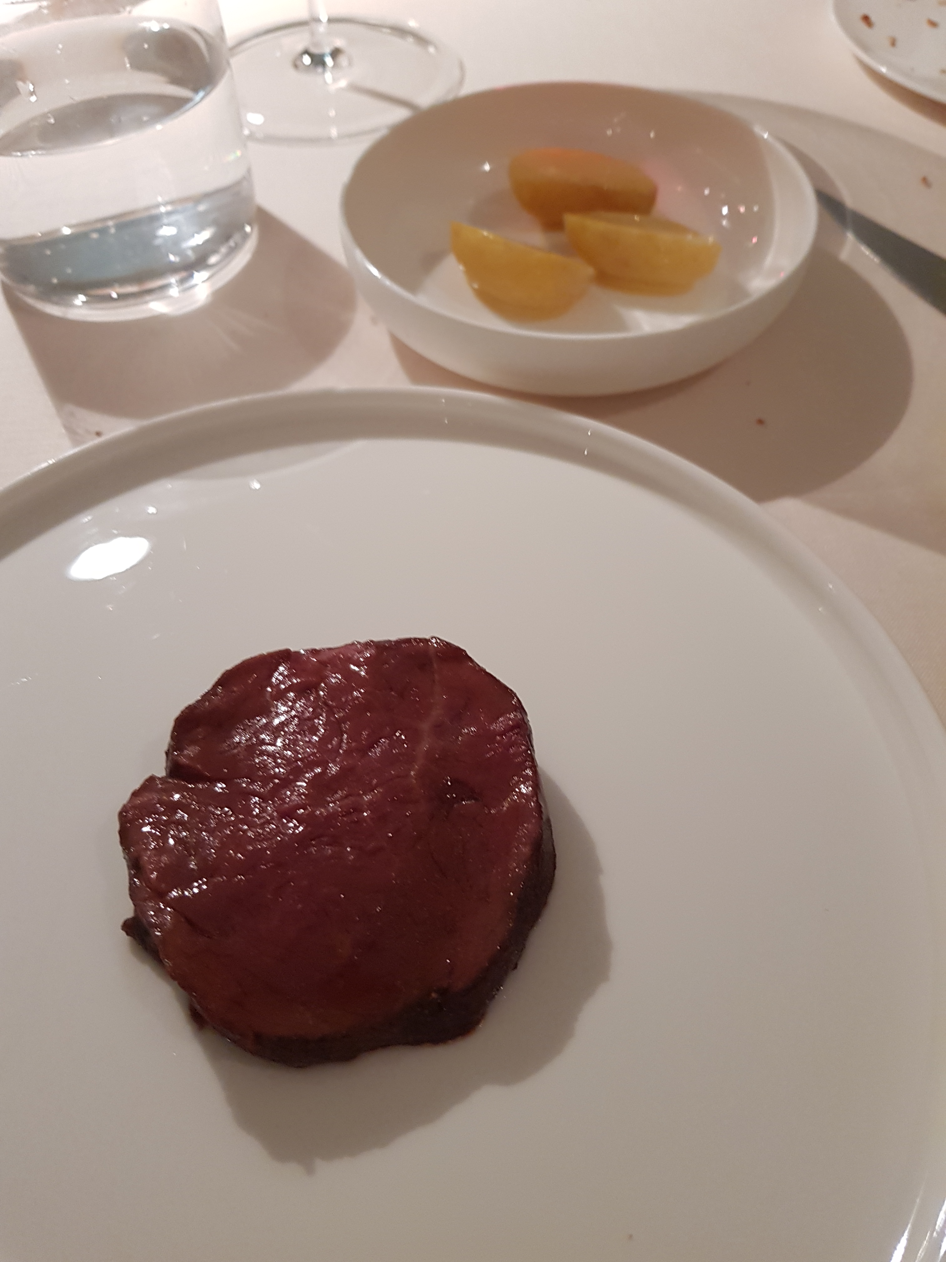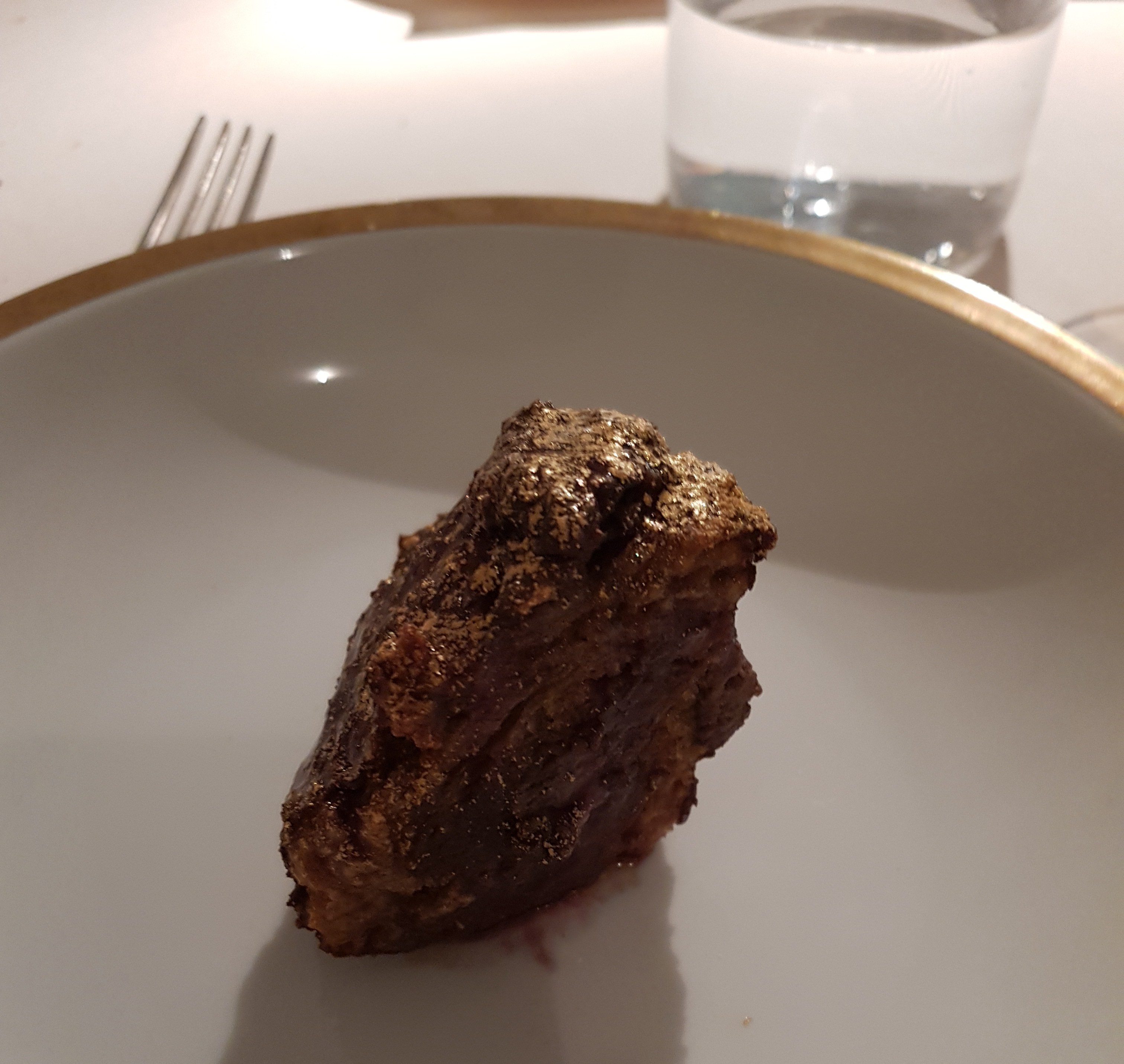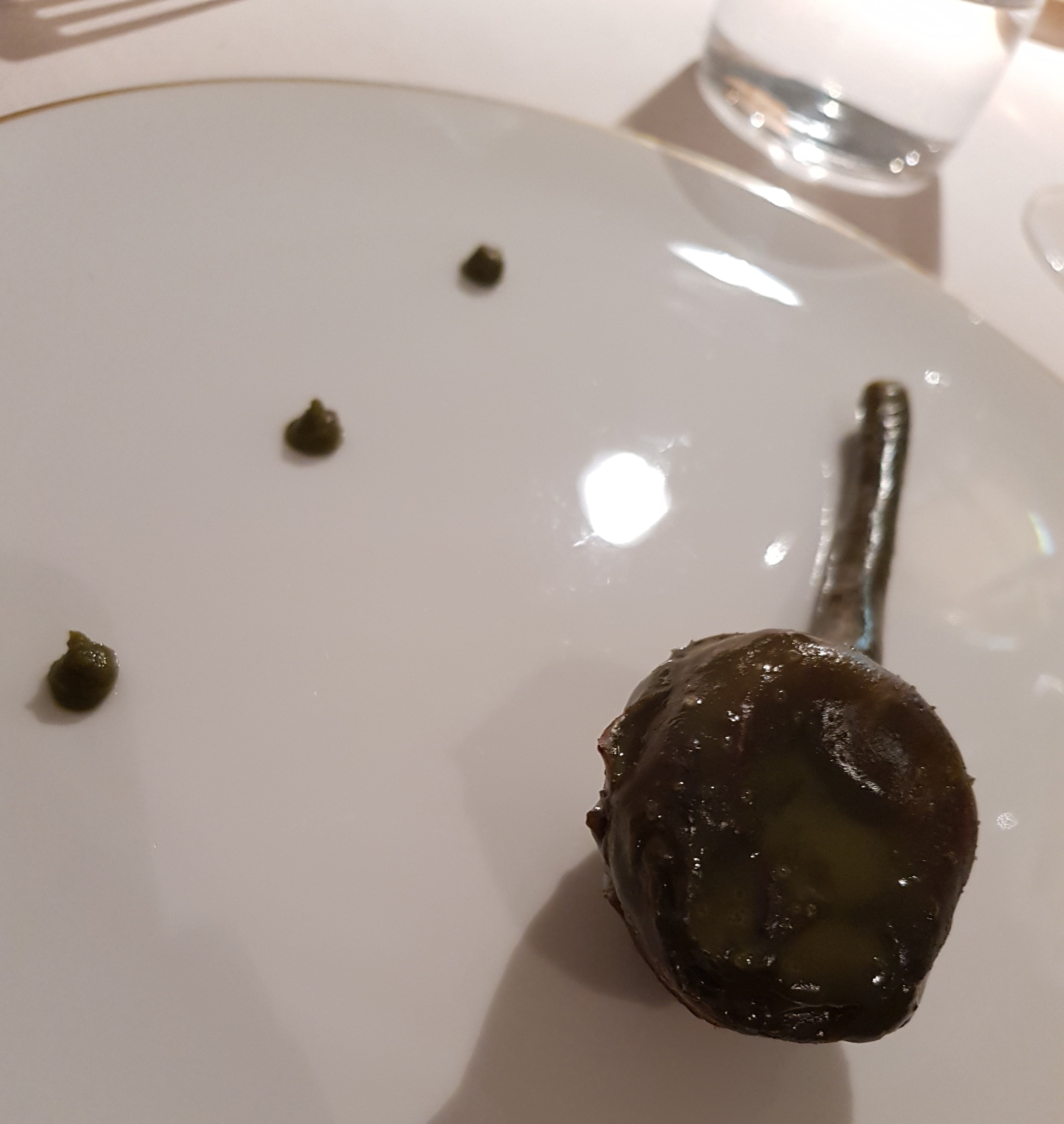 Mentre la “scarpetta” è uno schiaffo di realtà e di umami. L’avevo scelta fuori menu per gola, semplicemente. Patè di agnello e Montepulciano nel mitico pane del Reale. Praticamente poco più di un boccone, sembra l’ultimo di una pentola che ha bollito e ribollito e pulisce tutto il fondo più denso e saporito che c’è. Un concentrato di Abruzzo primordiale che meriterebbe le mani al posto delle posate. Salivazione a palla e incredulità.