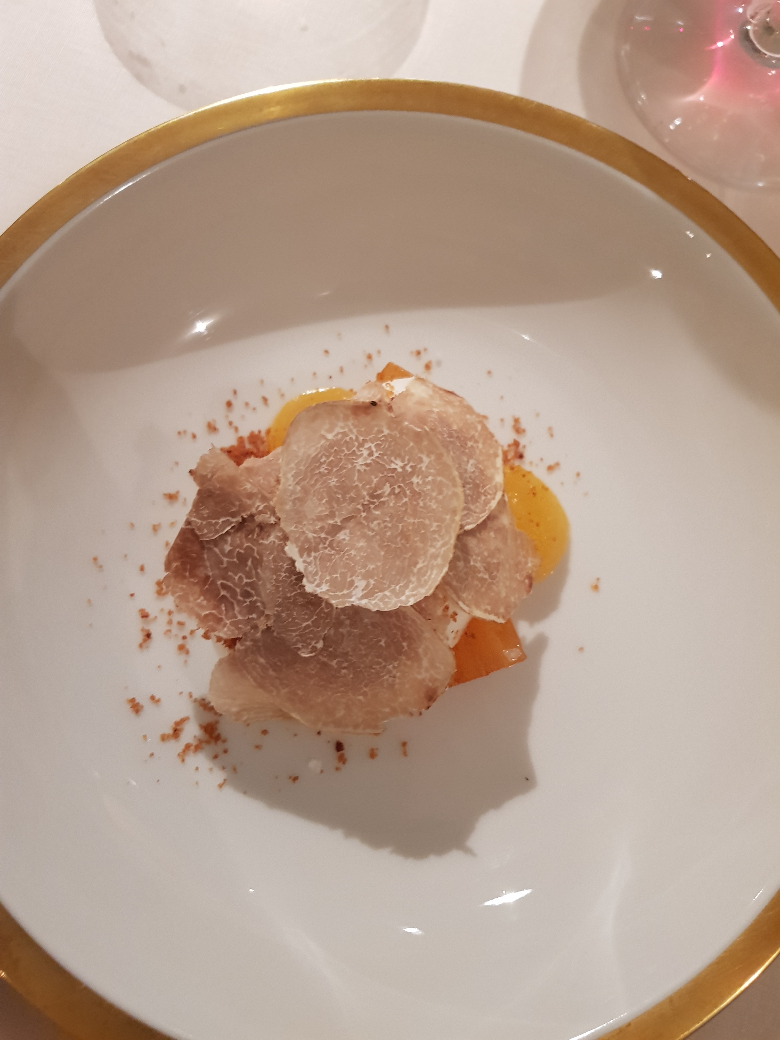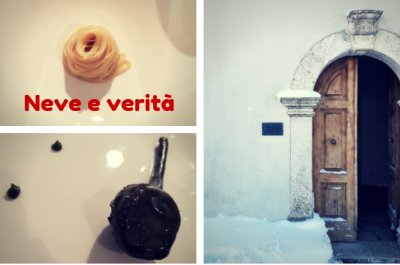 In questo sentiero di verità mi sono sorpresa, ricreduta e commossa. In vetta trovo i profumi del tartufo bianco, ospite inatteso del fine corsa. Cachi, cremoso alle castagne profumato all’alloro esplodono di gioia con la complicità di qualche sapido granello di sale lasciato cadere con astuzia e briciole croccanti di arancio. Wow! Il cucchiaio affonda prima piano dall’alto in basso e poi, capita la meraviglia, torna avido sui suoi passi. Alla fine la felicità è una cosa semplice, anzi apparentemente semplice.