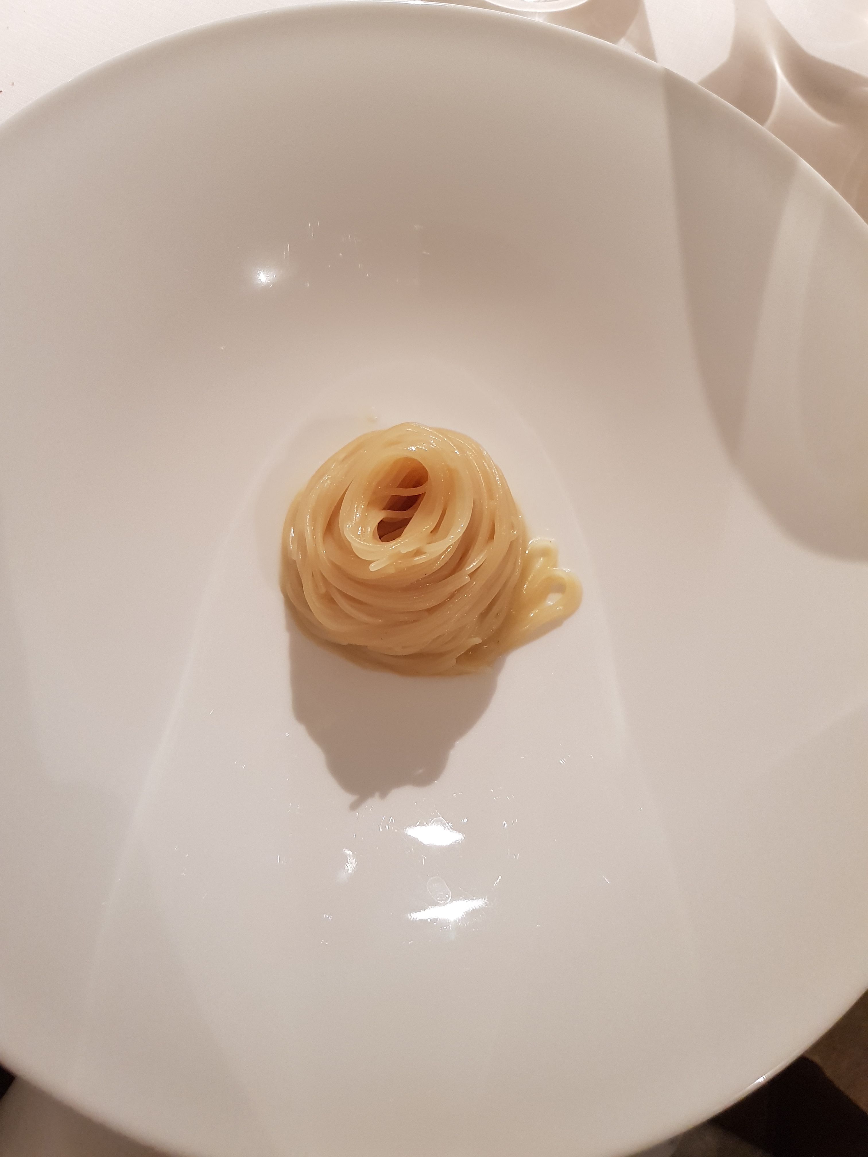 Non potevo vedere la complessità celata da questi capellini. Beffardi erano lì, mi guardavano come a sfidarmi con la consapevolezza che tanto alla fine vinceranno sempre loro. Non ci sono armi di fronte alla materia originale che, forte della sua linfa, si fa dolce e veste gli spaghettini come un caramello impossibile da pensare.