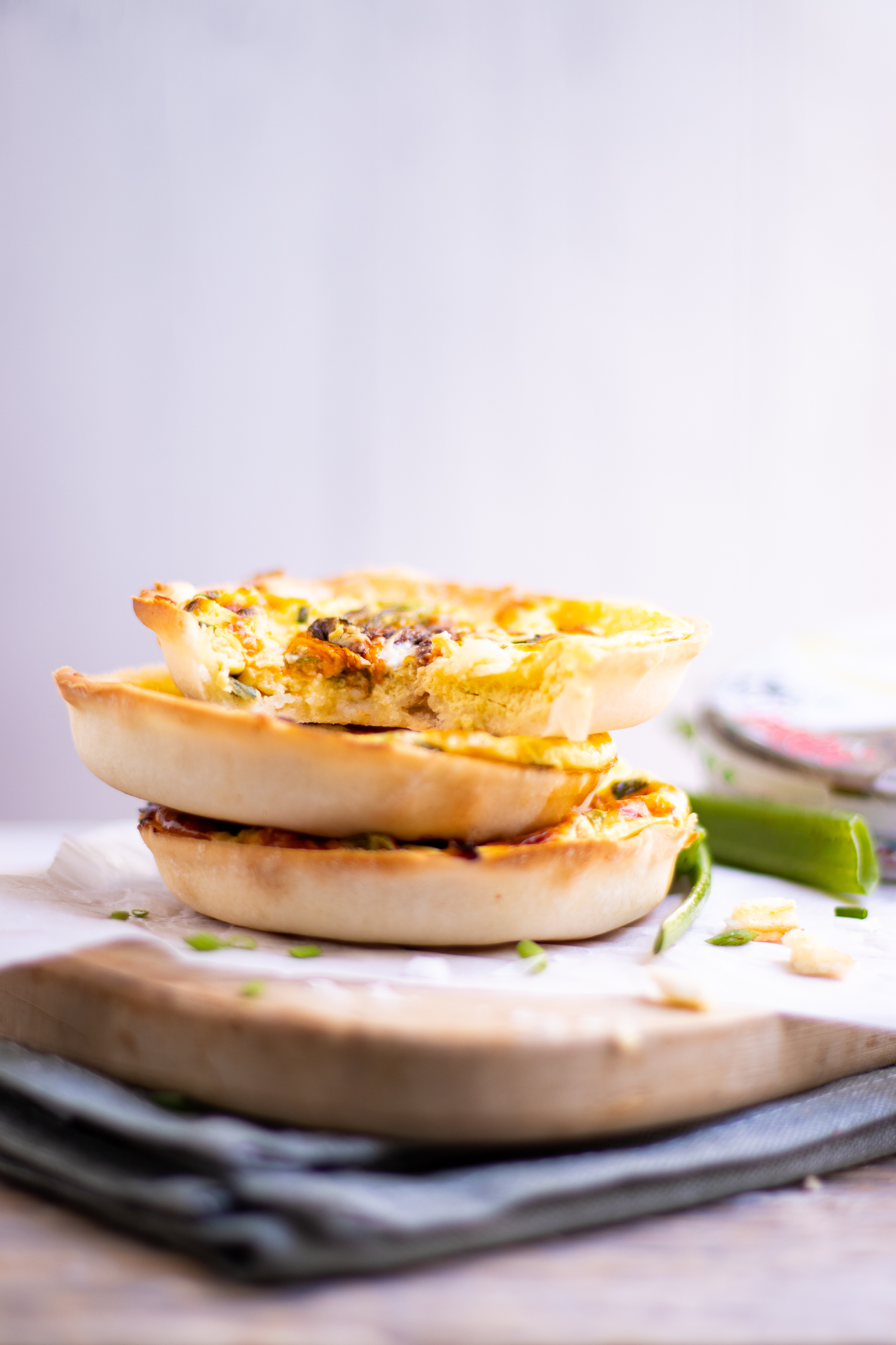 Sarà semplice sbattere le uova con latte, yogurt, parmigiano, pecorino, erba cipollina, un po’ di sale e del pepe. Dal rotolo di pasta sfoglia ricaverò dei dischi per ricavare 5 tortine. Verserò il composto di uova all’interno di ogni tortina e chiuderei con un fiore di zucca ben lavato e pulito, farcito con un filetto di alice e del formaggino lavorato a crema con sale e pepe. Poi in forno caldo a 180°C per una ventina di minuti.