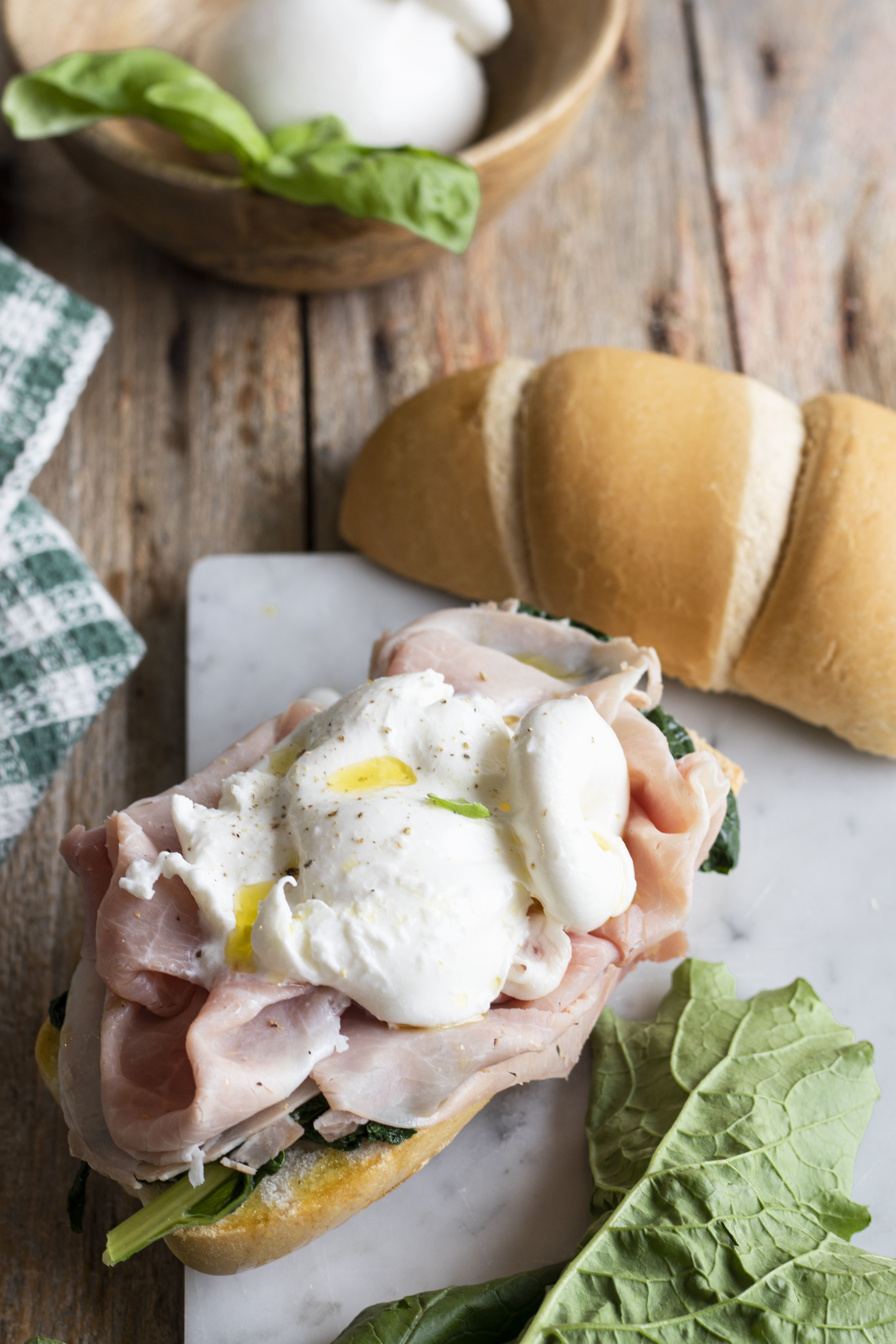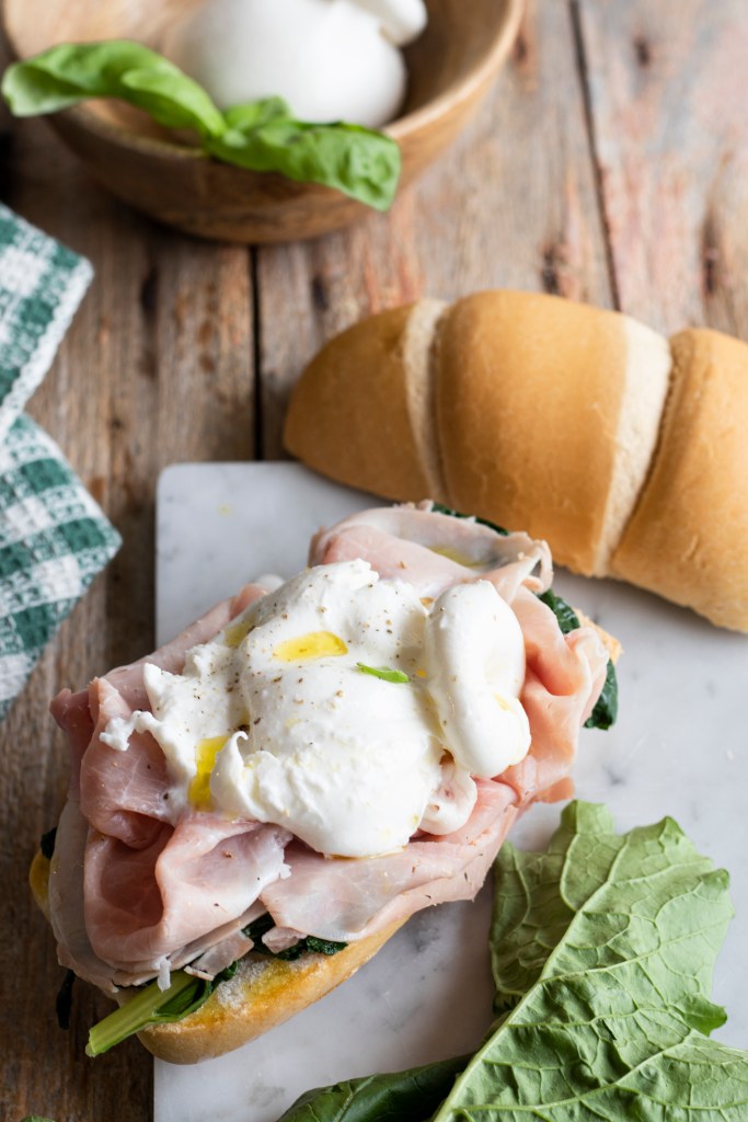 Oggi è sabato. Oggi il panino ha anche cime di rapa al basilico e una burratina che mamma mia quanto è buona con il prosciutto cotto.